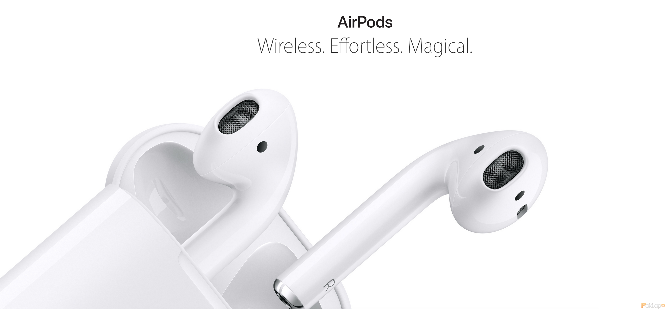 AirPods là headphone wireless 100%, điều này đồng nghĩa với việc không hề có dây nối giữa 2 phần earbud. Sản phẩm được bán kèm với bộ sạc với 2 chốt sạc cùng bộ tăng tốc sạc đầy thời lượng pin 5 tiếng trong vòng 15 phút thay vì tốn đến 3h so với loại khác.